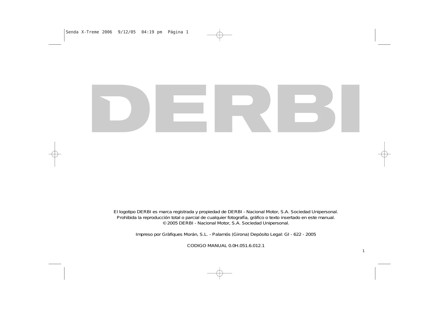En este manual se especifican los principales detalles para el cuidado de su ciclomotor, para que obtenga el mejor funcionamiento y la mayor duración con un mínimo coste. Cuide su ciclomotor, La calidad DERBI se encargará del resto, con los recambios originales y una red Nacional de más de cuatro mil Agentes y talleres autorizados, estamos seguros de que obtendrá plena satisfacción en el uso del vehículo. Dans ce manuel sont spécifiés les principaux détails pour l’entretien de votre cyclomoteur afin d’obtenir le meilleur fonctionnement et une plus grande durée de vie au coût minimum. Prenez soin de votre cyclomoteur, le département qualité DERBI se chargera du reste, avec les pièces de rechange originales et un réseau national de plus de quatre mille agents et garages autorisés, nous sommes sûrs que vous obtiendrez la pleine satisfaction dans l’utilisation de votre véhicule. En cas de problème, s’adresser au représentant le plus proche. Ante qualquier problema, dirigirse al representante más próximo.