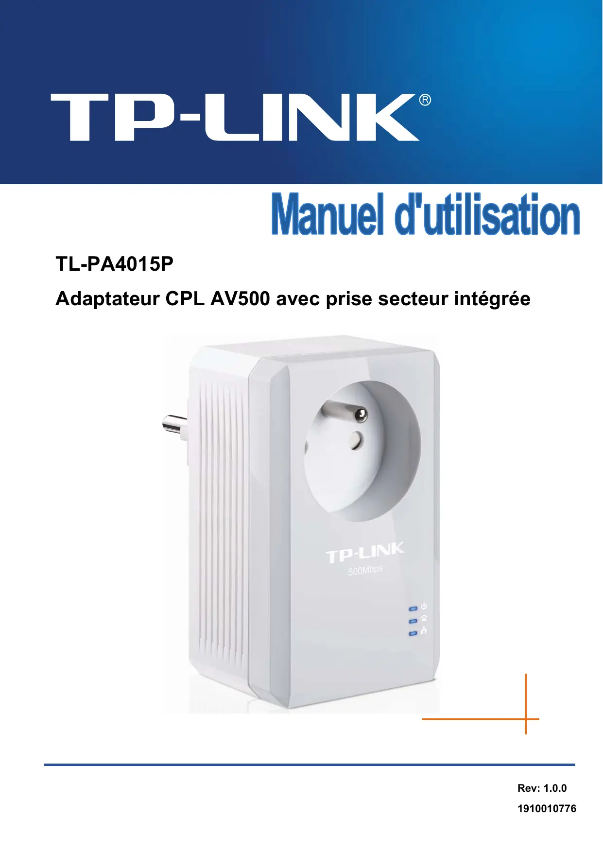 PA4015 - Adaptateur CPL TP-LINK - Notice d'utilisation et mode d'emploi gratuit