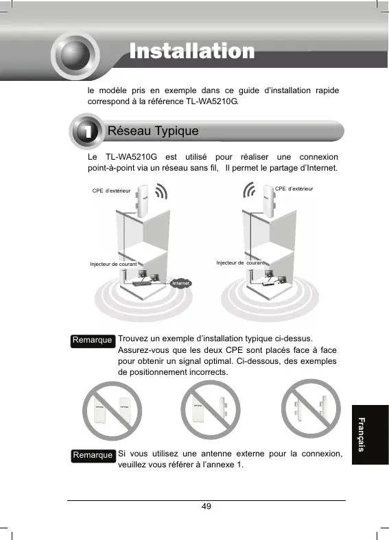 J OK Installation le modèle pris en exemple dans ce guide d’installation rapide correspond à la référence TL-WA5210G.