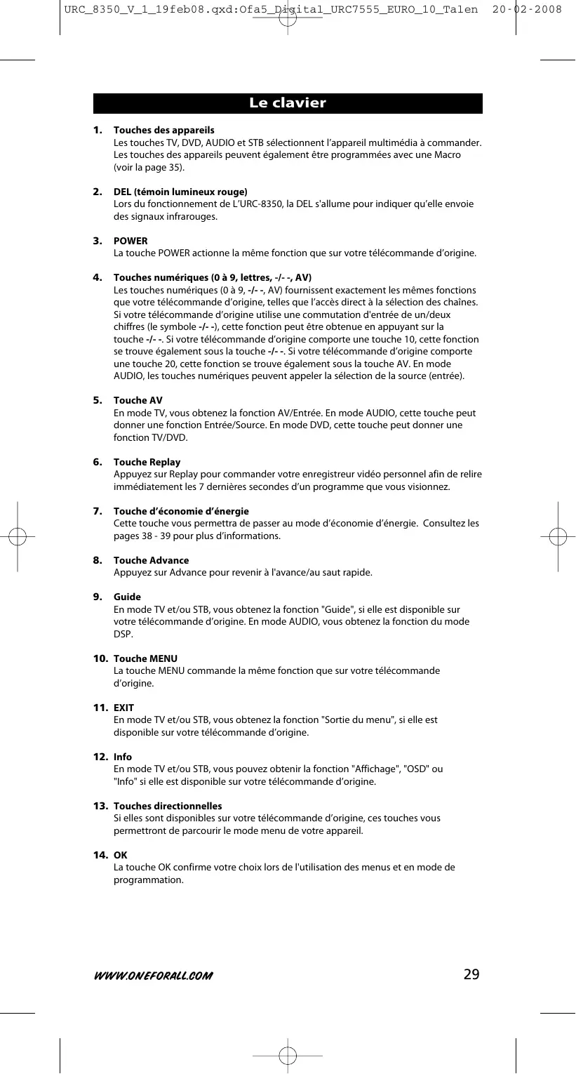 MODE D'EMPLOI URC 8350 ONEFORALL