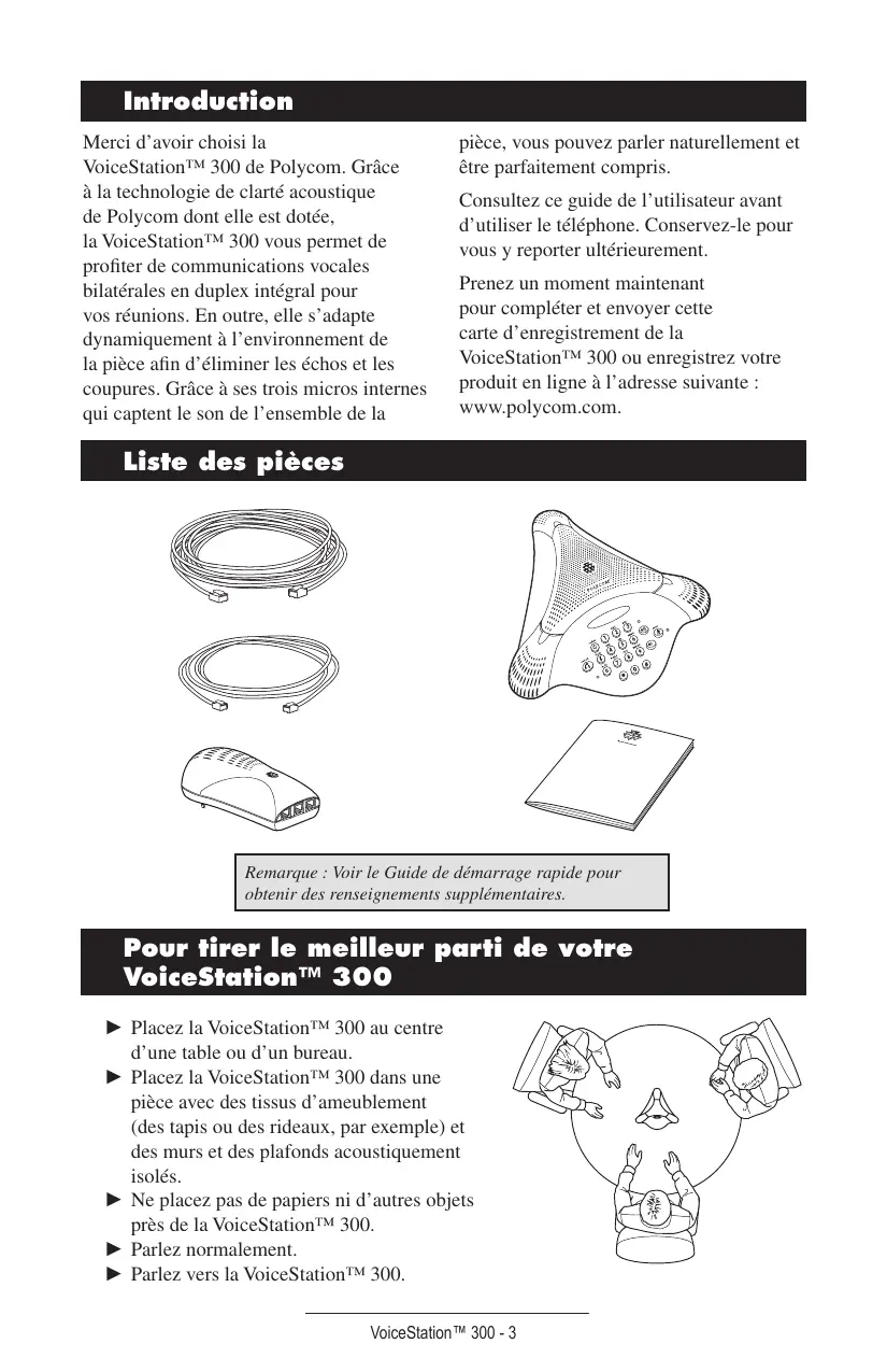 VOICESTATION 300, VOICESTATION 500 - Système de conférence téléphonique POLYCOM - Notice d'utilisation et mode d'emploi gratuit