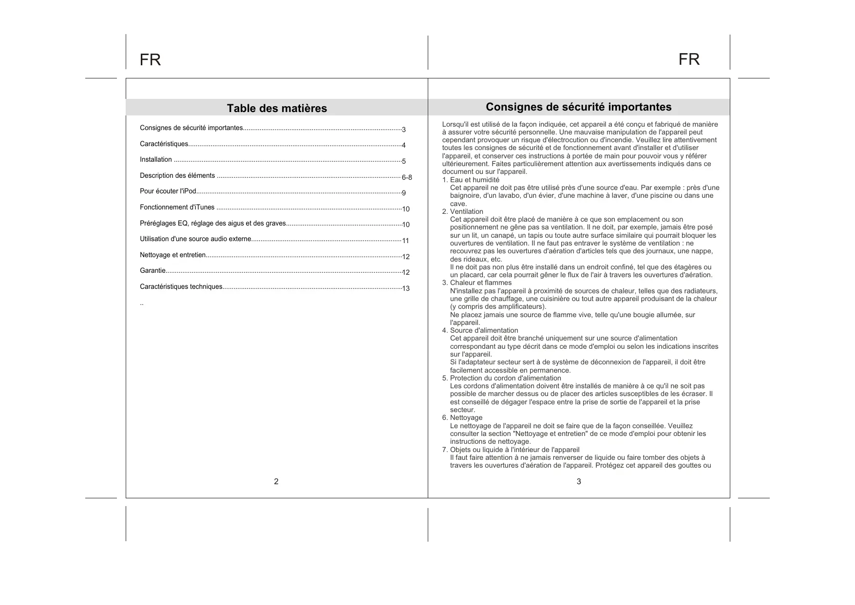 - -8 Pour écouter l'iPod p. 9