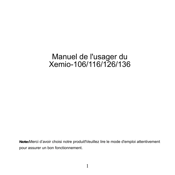 Manuel de l'usager du Xemio-106/116/126/136 Note:Merci d’avoir choisi notre produit!Veuillez lire le mode d'emploi attentivement pour assurer un bon fonctionnement.