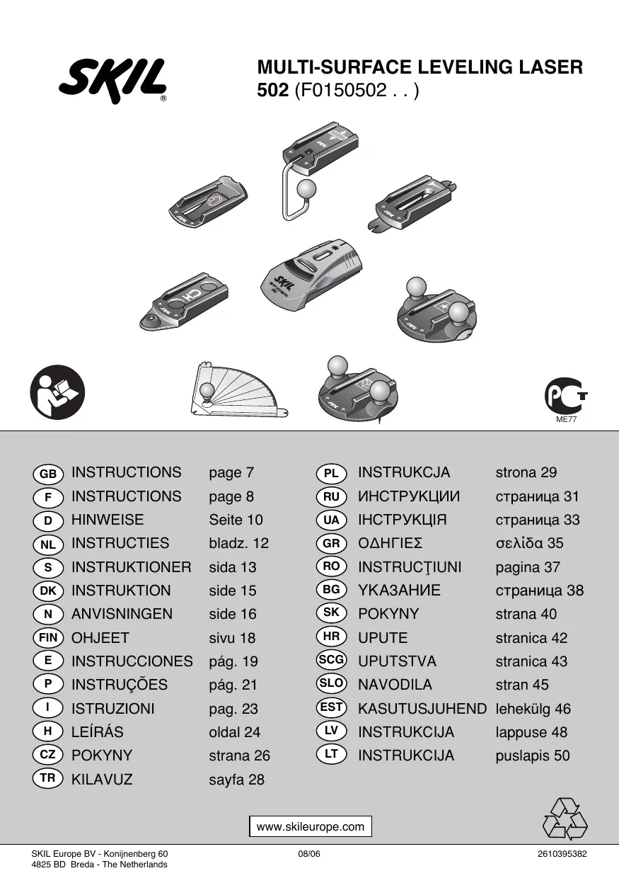 Téléchargez la notice de votre Niveau laser au format PDF gratuitement ! Retrouvez votre notice 0502 - SKIL et reprennez votre appareil électronique en main. Sur cette page sont publiés tous les documents nécessaires à l'utilisation de votre appareil 0502 de la marque SKIL.