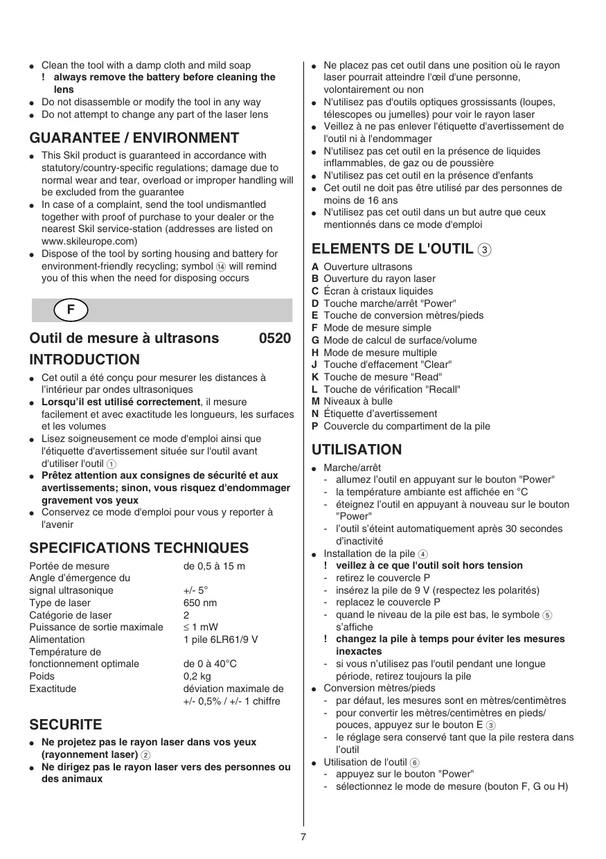 0520 - Outil de mesure SKIL - Notice d'utilisation et mode d'emploi gratuit
