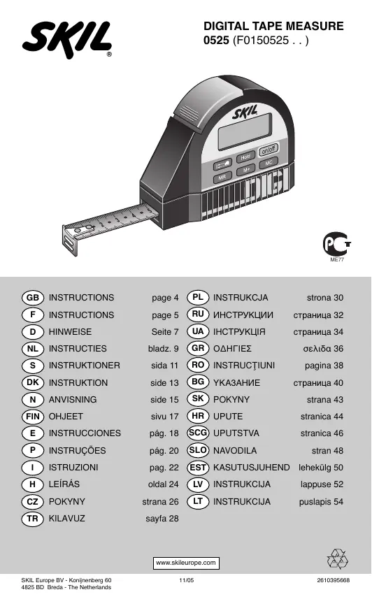 0525 - Mètre ruban numérique SKIL - Notice d'utilisation et mode d'emploi gratuit