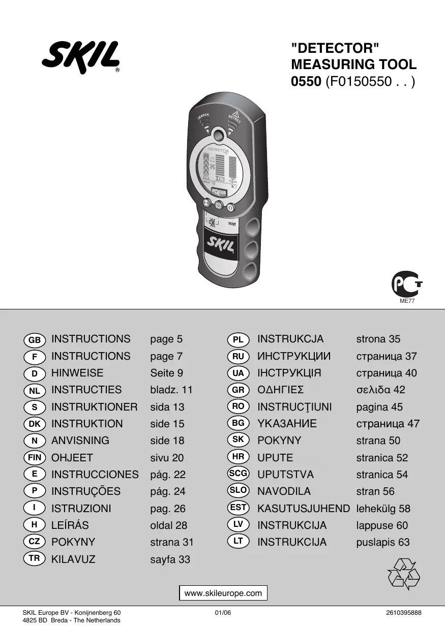 0550 - Détecteur SKIL - Notice d'utilisation et mode d'emploi gratuit