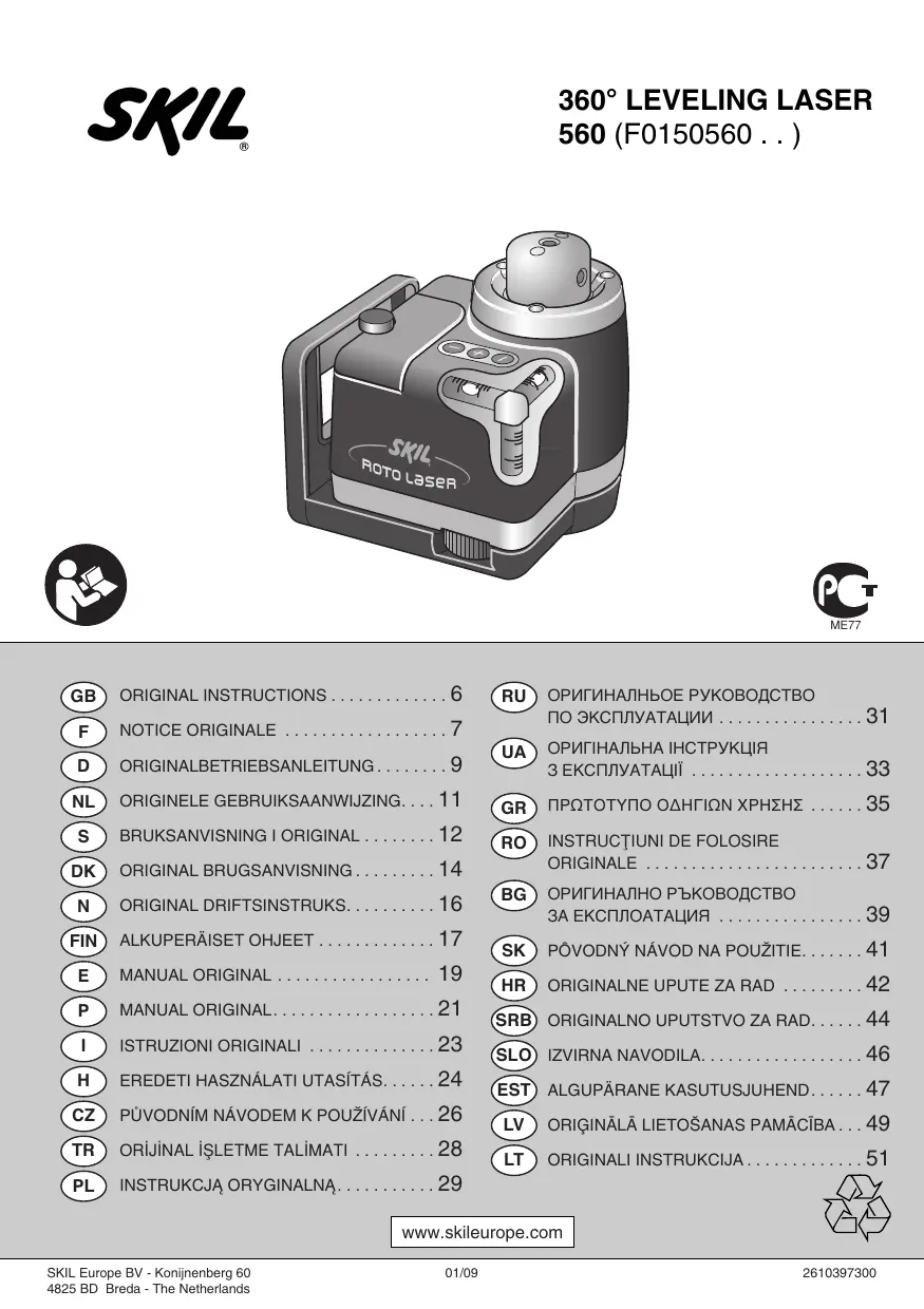 Téléchargez la notice de votre Niveau laser au format PDF gratuitement ! Retrouvez votre notice 0560 - SKIL et reprennez votre appareil électronique en main. Sur cette page sont publiés tous les documents nécessaires à l'utilisation de votre appareil 0560 de la marque SKIL.