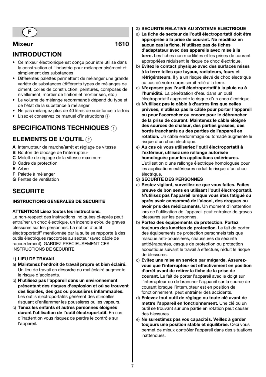 1610 - Mélangeur électrique SKIL - Notice d'utilisation et mode d'emploi gratuit