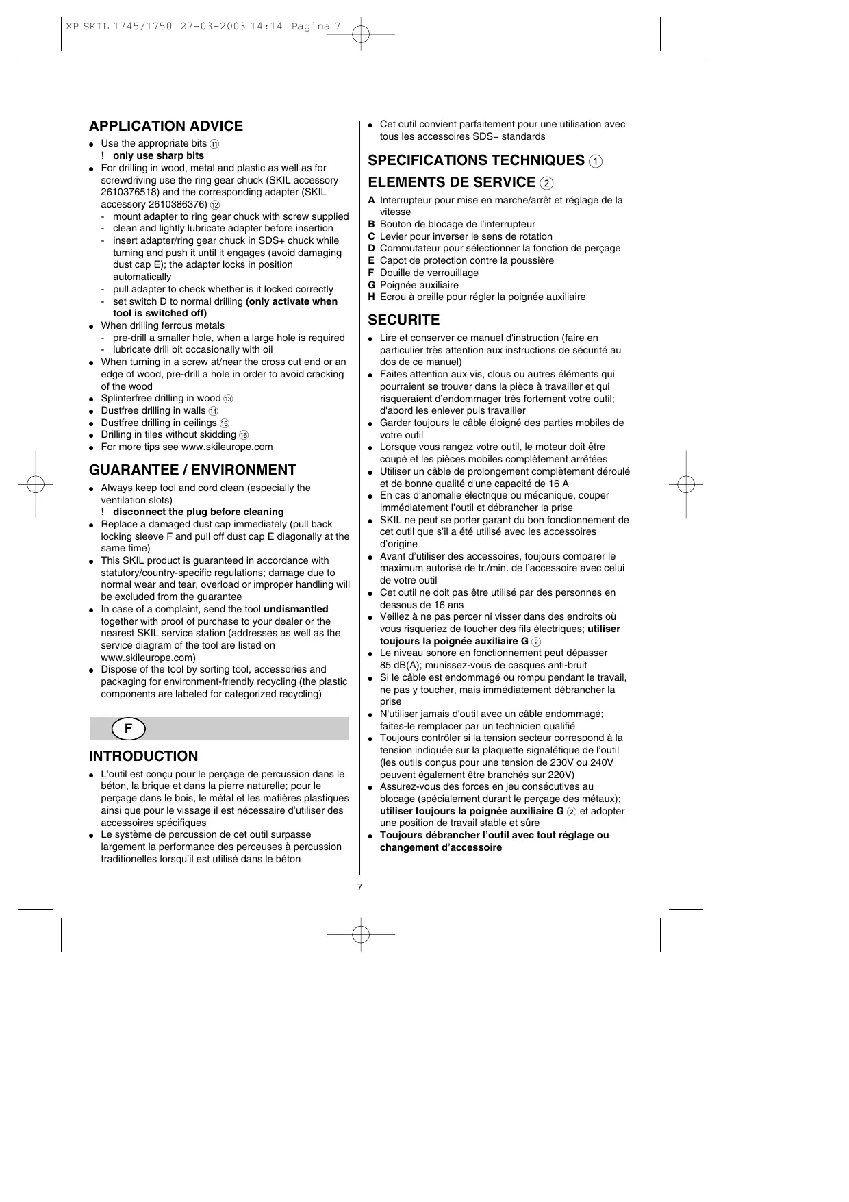 - SKIL ne peut se porter garant du bon fonctionnement de cet outil que s'il a eté utilisé avec les accessoires d'origine