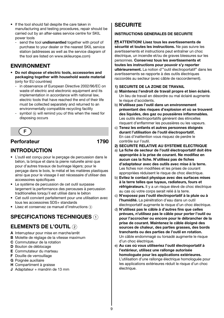 1790 - Perceuse électrique SKIL - Notice d'utilisation et mode d'emploi gratuit