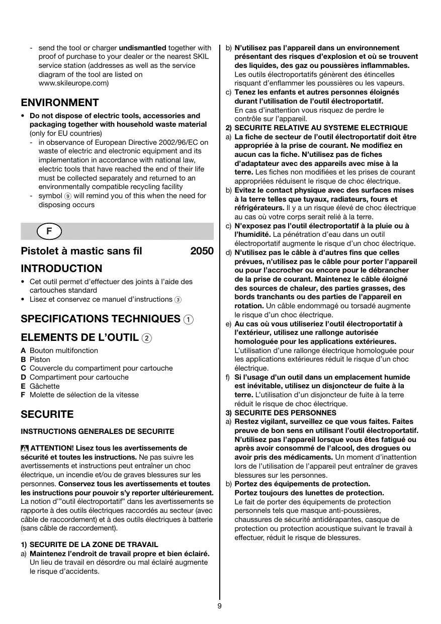 - SKIL ne peut se porter garant du bon fonctionnement de cet outil que s'il a ete utilise avec les accessoires d'origine