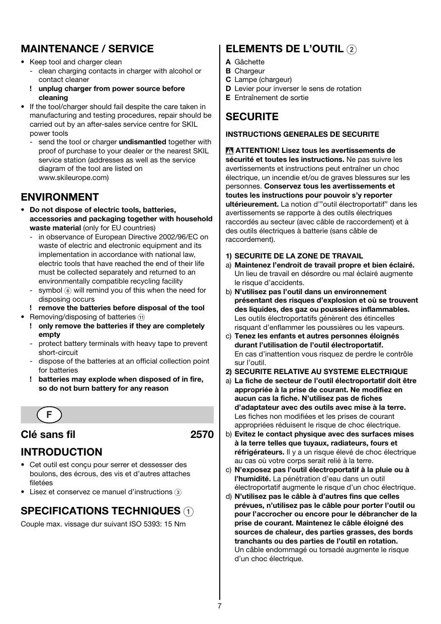 Retrouvez gratuitement la notice de l'appareil 2570 SKIL au format PDF.