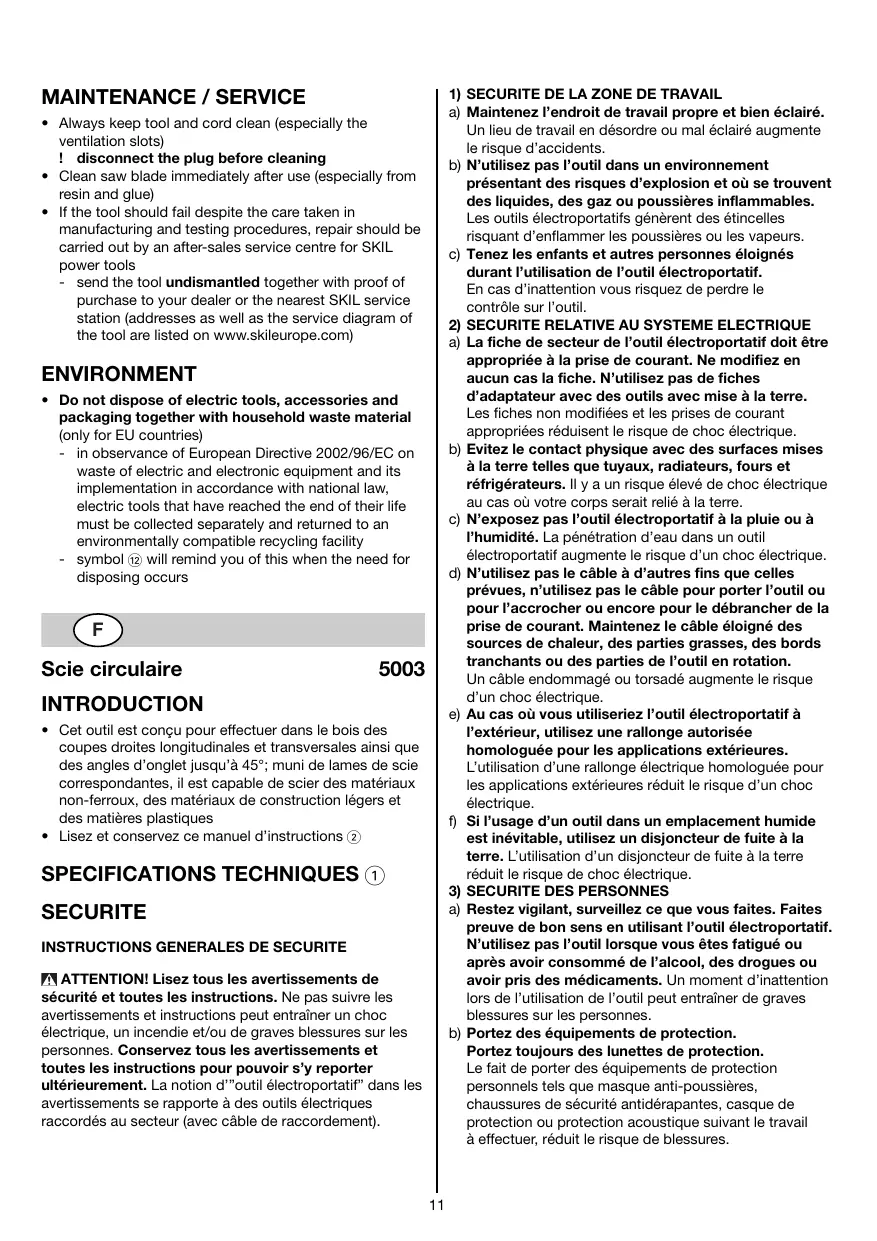 MODE D'EMPLOI 5003 SKIL