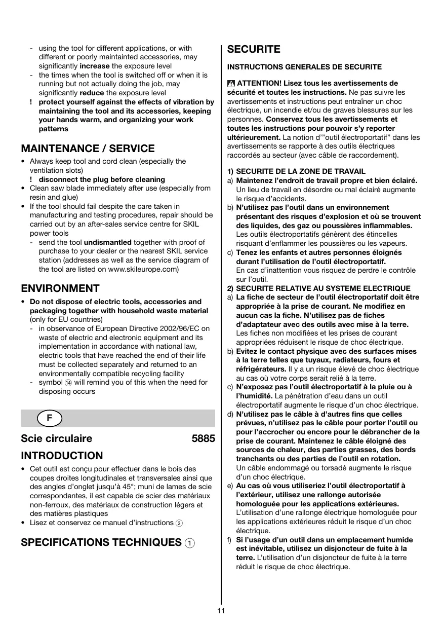 5885 - SKIL - Notice d'utilisation et mode d'emploi gratuit