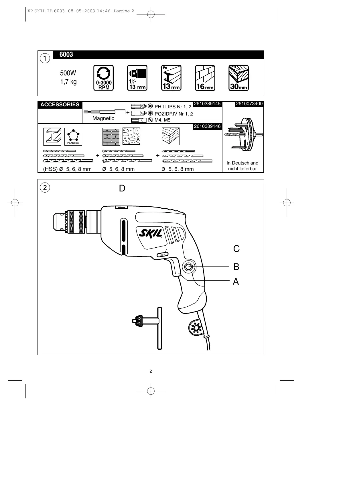 6003 - Perceuse électrique SKIL - Notice d'utilisation et mode d'emploi gratuit