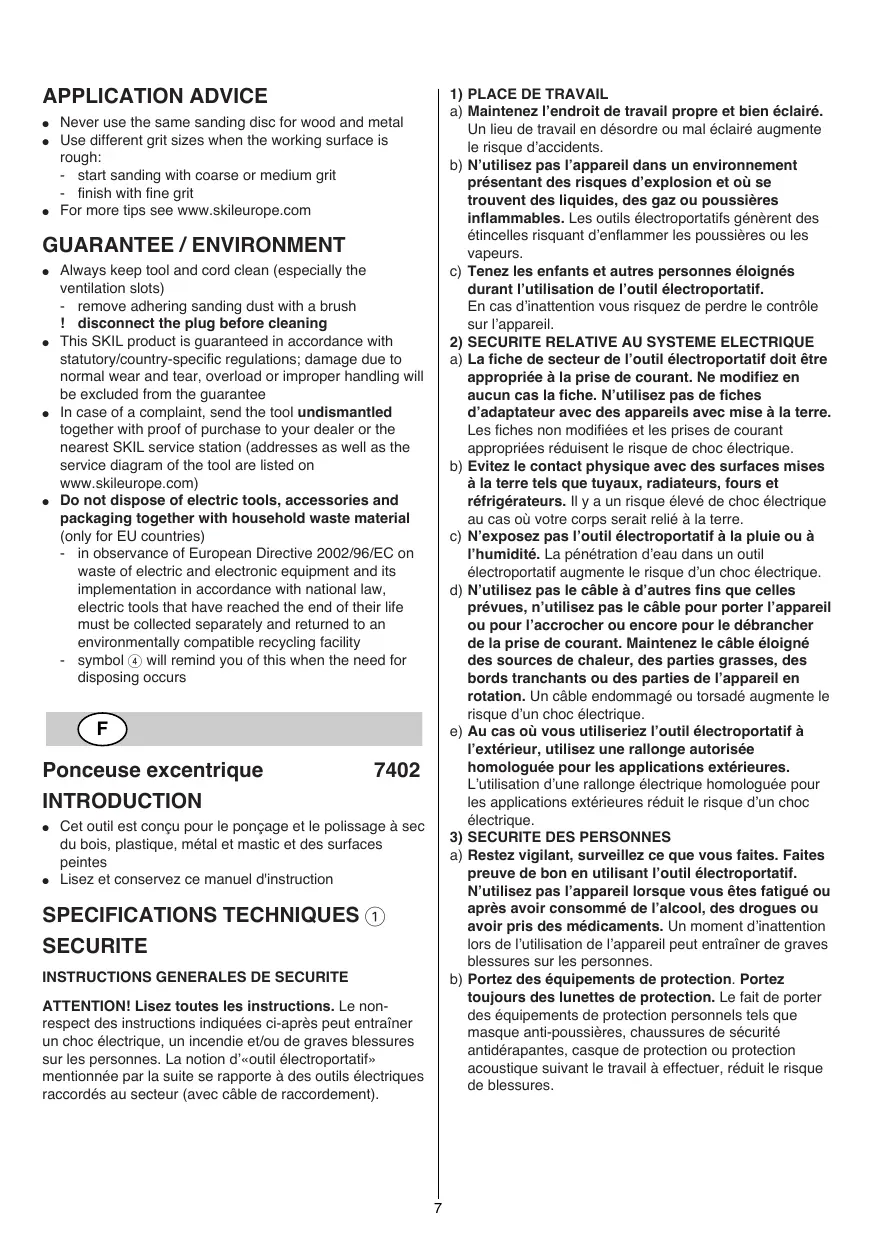 7402 - Ponceuse électrique SKIL - Notice d'utilisation et mode d'emploi gratuit