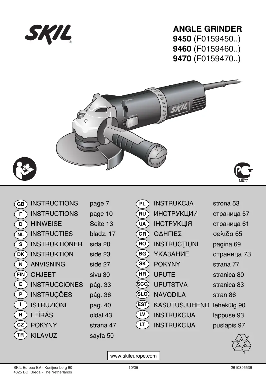 Retrouvez gratuitement la notice de l'appareil 9470 SKIL au format PDF.