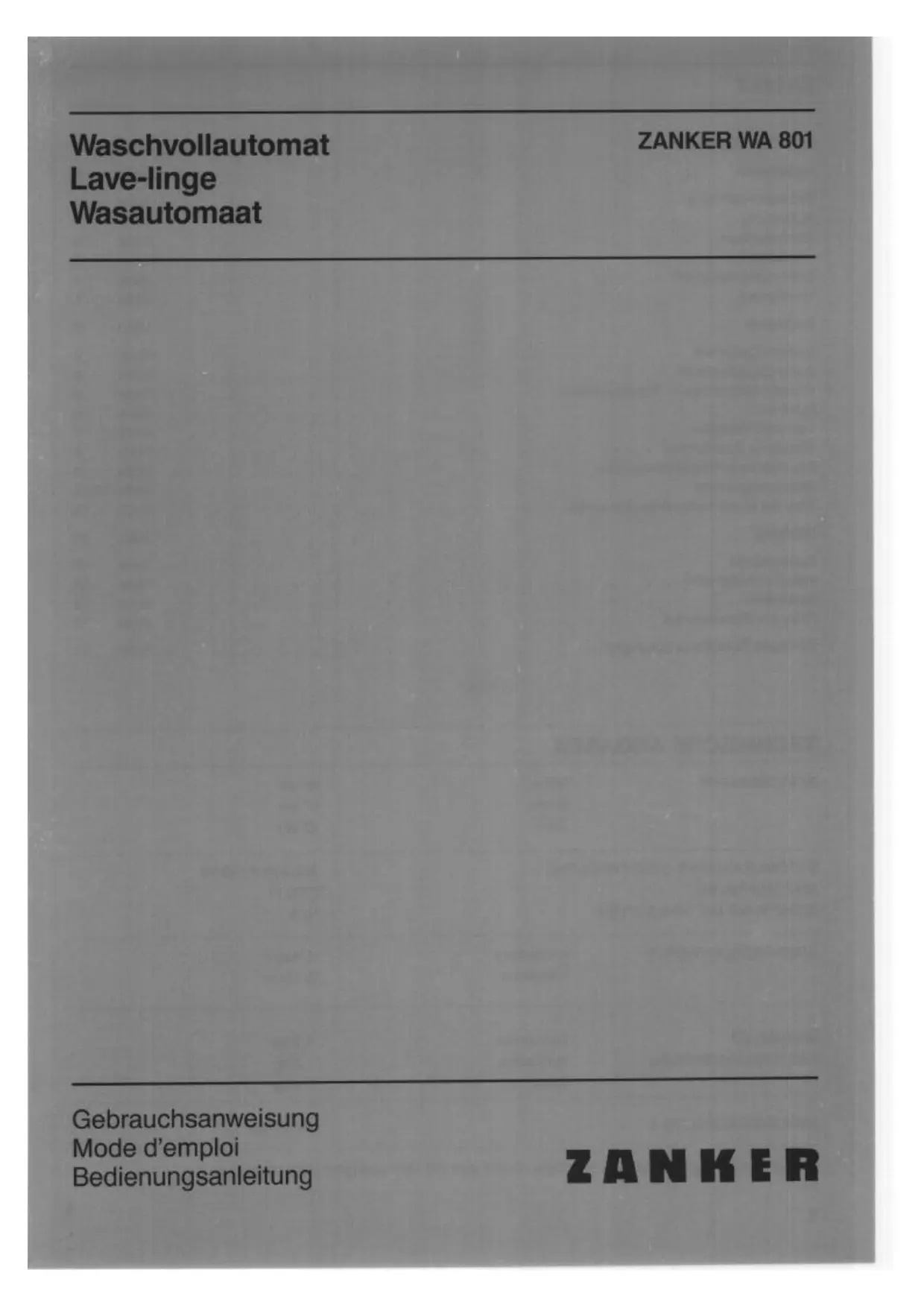Retrouvez gratuitement la notice de l'appareil WA801 ZANKER au format PDF.