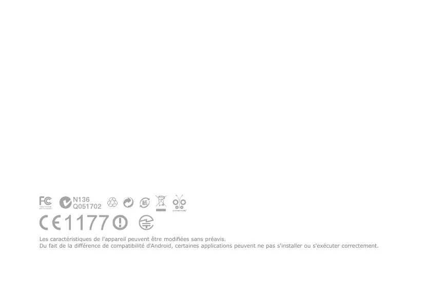 - Premez grand soin de ne pas causeur de chocs ou de pressions externes lorsquveyou utilise des appareils avec des écrans d'affchage (LCD, AMOLED, ou pavetactile), ou un disque dur. La garantie peut etre annulée si des dommages se produisent dans les circontas susmentionnées.