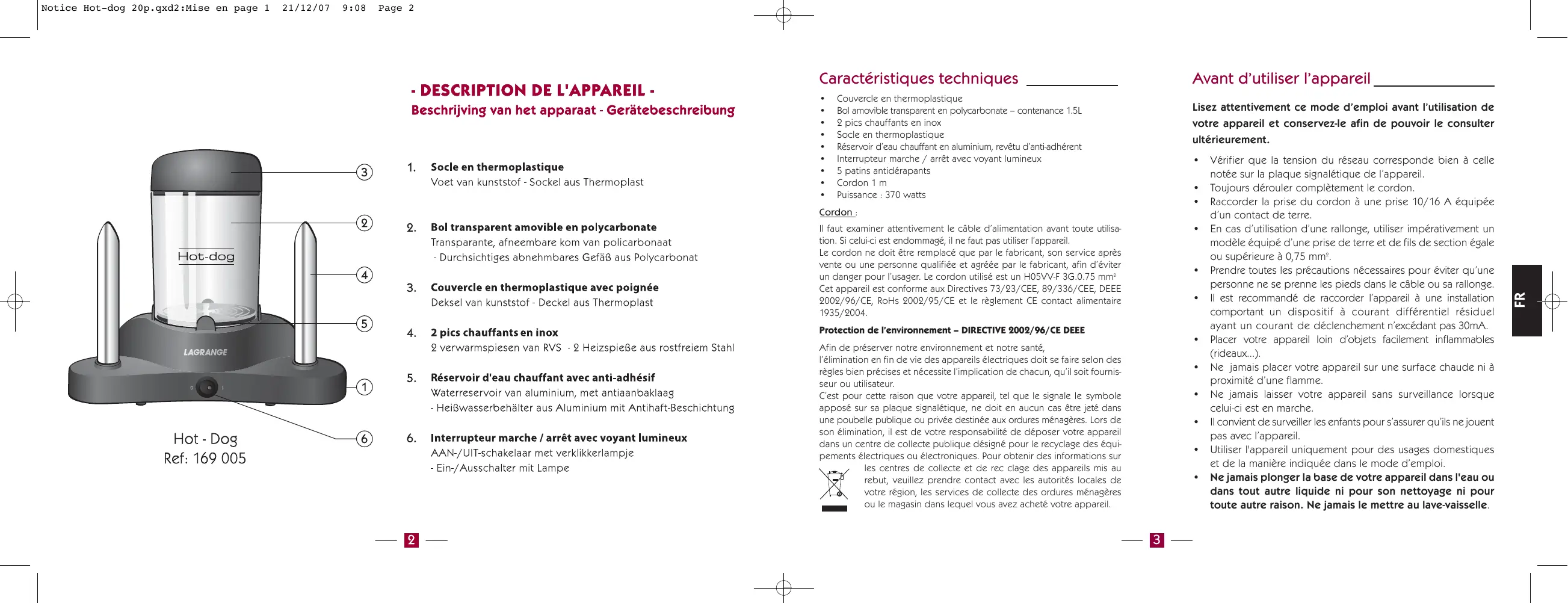 Retrouvez gratuitement la notice de l'appareil 169005 LAGRANGE au format PDF.