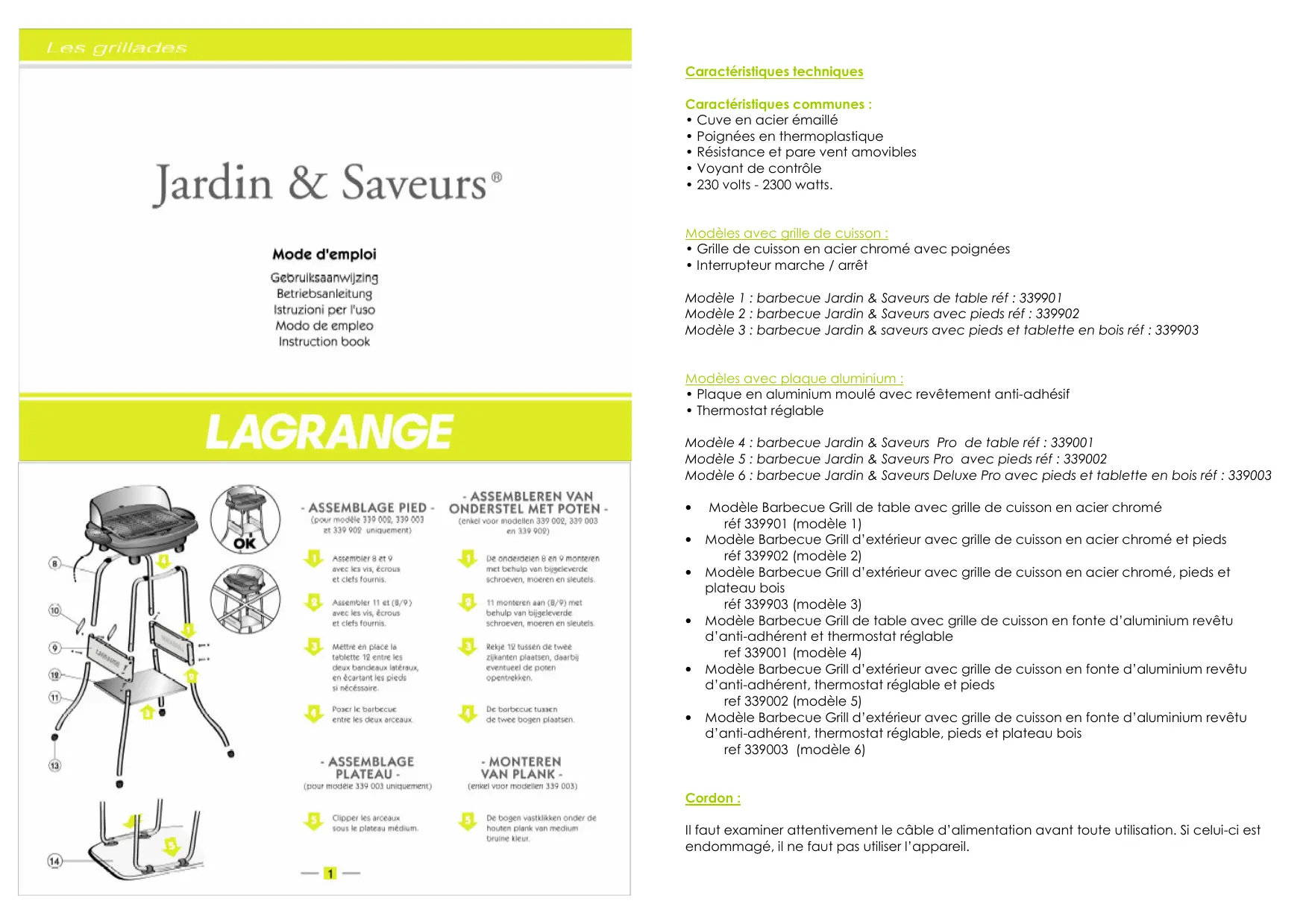 339902 - Barbecue LAGRANGE - Notice d'utilisation et mode d'emploi gratuit
