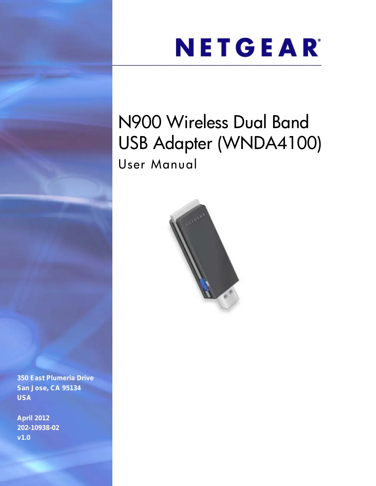 N900 Wireless Dual Band USB Adapter WNDA4100 Caution: (i) The device when operated in the band 5150-5250 MHz is only for indoor use to reduce the potential for harmful interference to co-channel mobile satellite systems; (ii) The maximum antenna gain permitted for devices in the bands 5250-5350 MHz and 5470-5725 MHz shall comply with the e.i.r.p. limit; and (iii) The maximum antenna gain permitted for devices in the band 5725-5825 MHz shall comply with the e.i.r.p. limits specified for point-to-point and non point-to-point operation as appropriate. (iv) Users should also be advised that high-power radars are allocated as primary users (i.e., priority users) of the bands 5250-5350 MHz and 5650-5850 MHz and that these radars could cause interference and/or damage to LE-LAN devices. Ce dispositif est conforme à la norme CNR-210 d'Industrie Canada applicable aux appareils radio exempts de licence. Son fonctionnement est sujet aux deux conditions suivantes: (1) le dispositif ne doit pas produire de brouillage préjudiciable, et (2) ce dispositif doit accepter tout brouillage reçu, y compris un brouillage susceptible de provoquer un fonctionnement indésirable. Déclaration d'exposition aux radiations: Le produit est conforme aux limites d'exposition pour les appareils portables RF pour les Etats-Unis et le Canada établies pour un environnement non contrôlé. Le produit est sûr pour un fonctionnement tel que décrit dans ce manuel. La réduction aux expositions RF peut être augmentée si l'appareil peut être conservé aussi loin que possible du corps de l'utilisateur ou que le dispositif est réglé sur la puissance de sortie la plus faible si une telle fonction est disponible.