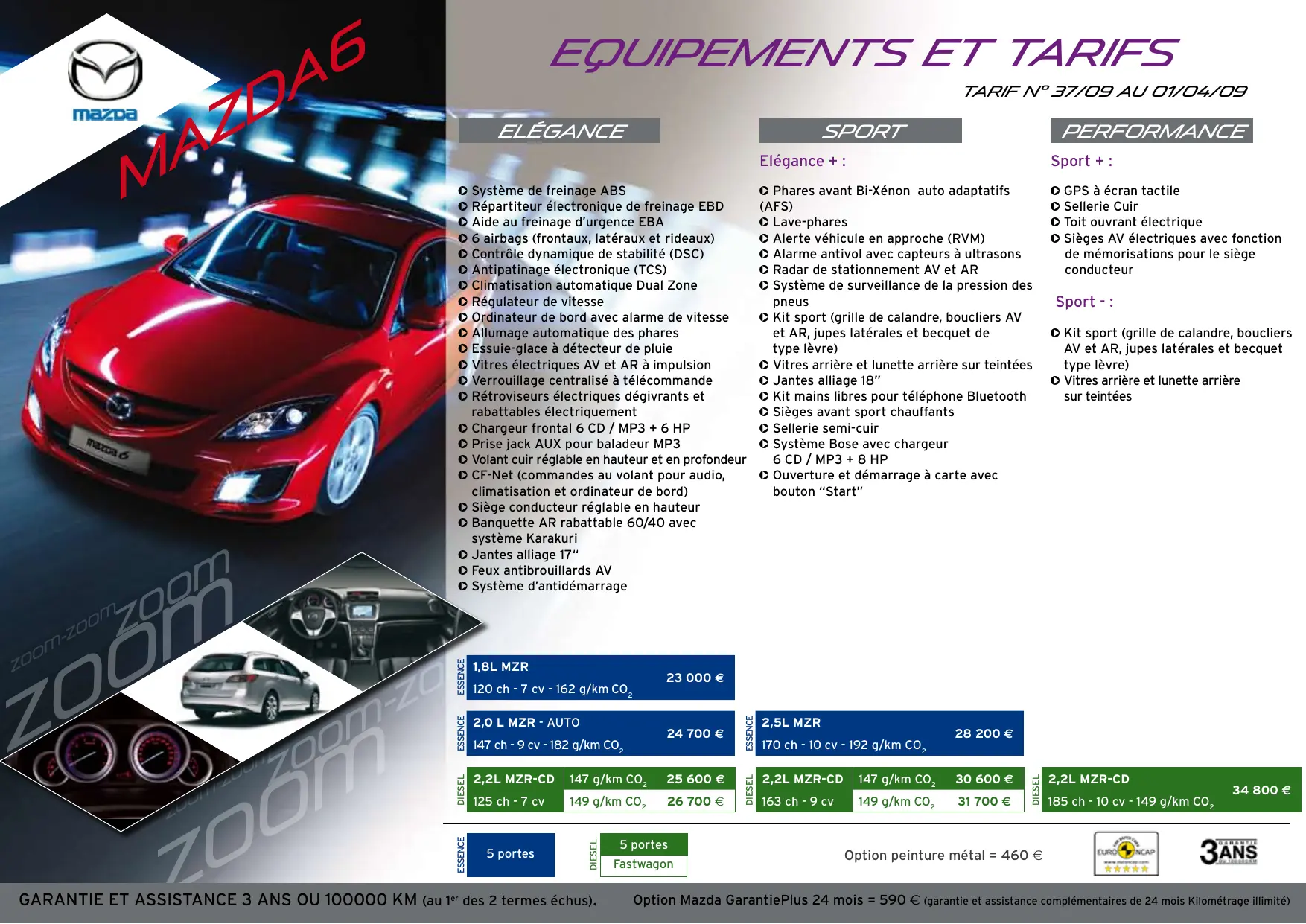 | MOTORISATIONS | 1,8L MZR | 2,0L MZR auto | 2,5L MZR | 2,2L MZR-CD 125 ch | 2,2 MZR-CD 163 ch | 2,2 MZR-CD 185 ch | |