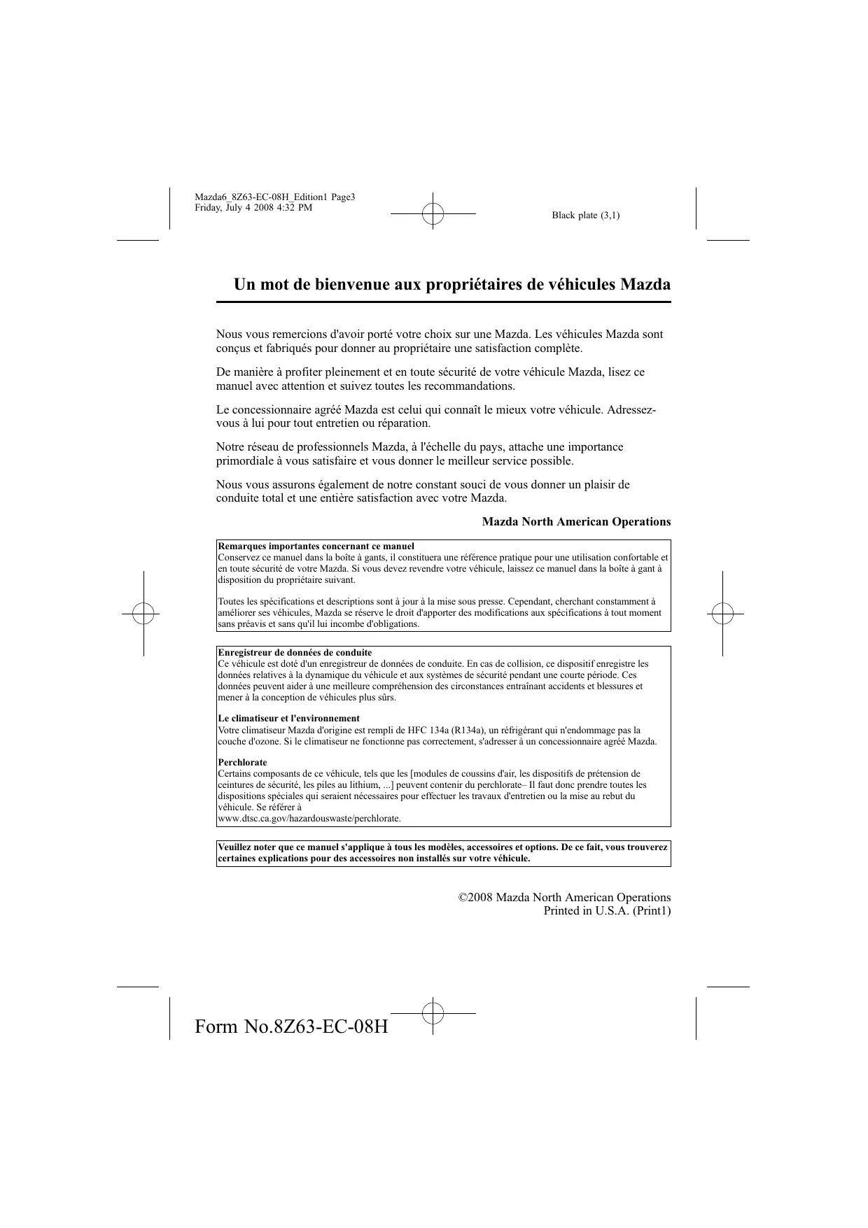 MODE D'EMPLOI 6 2008 MAZDA