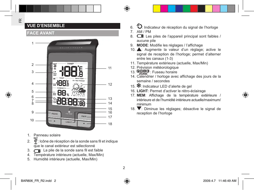 Station météorologique solaire Modèle: BAR806 / BAR806A