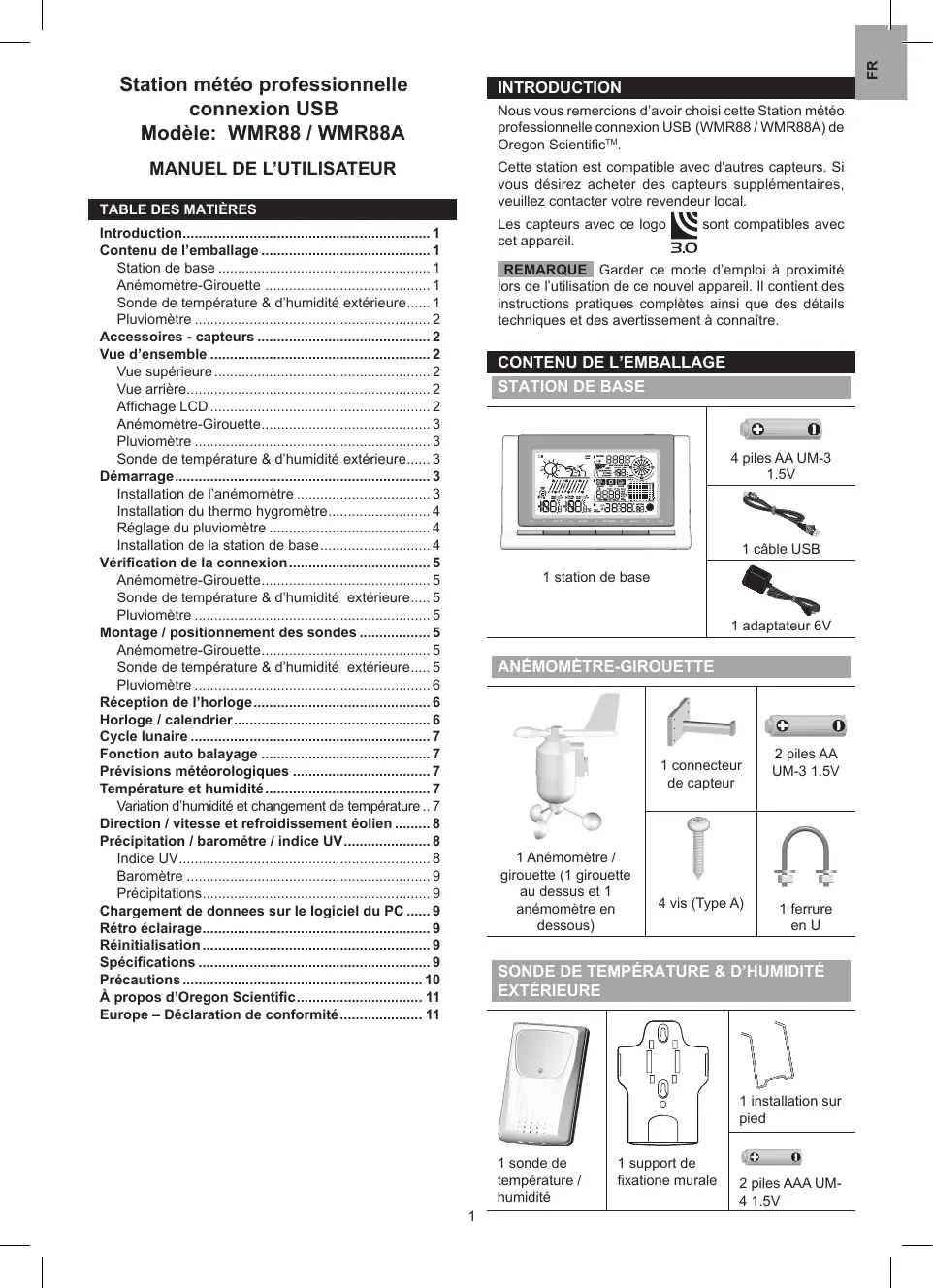 WMR88A - Station météorologique OREGON - Notice d'utilisation et mode d'emploi gratuit