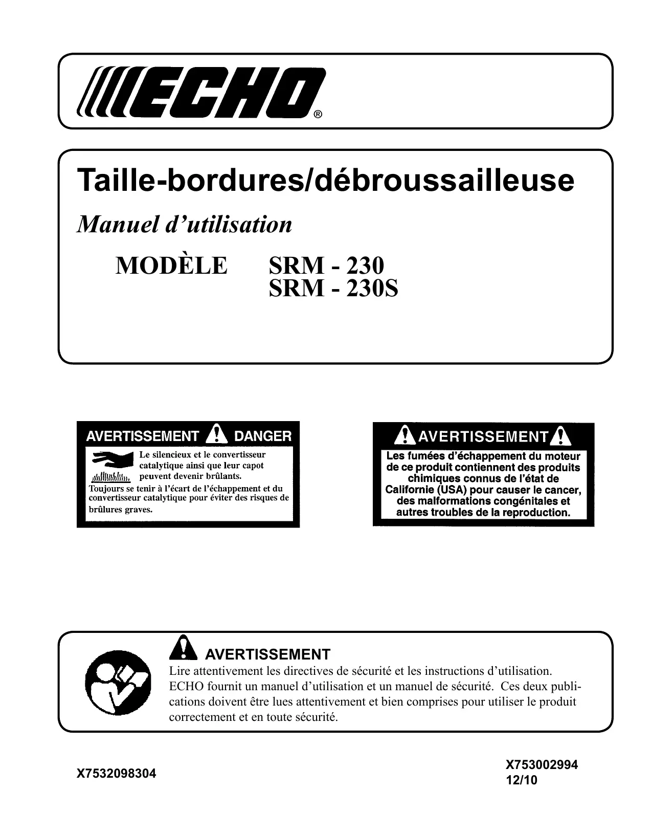 Retrouvez gratuitement la notice de l'appareil SRM-230S ECHO au format PDF.