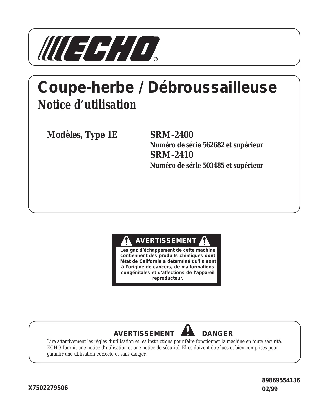 Retrouvez gratuitement la notice de l'appareil SRM-2400 TYPE 1E ECHO au format PDF.