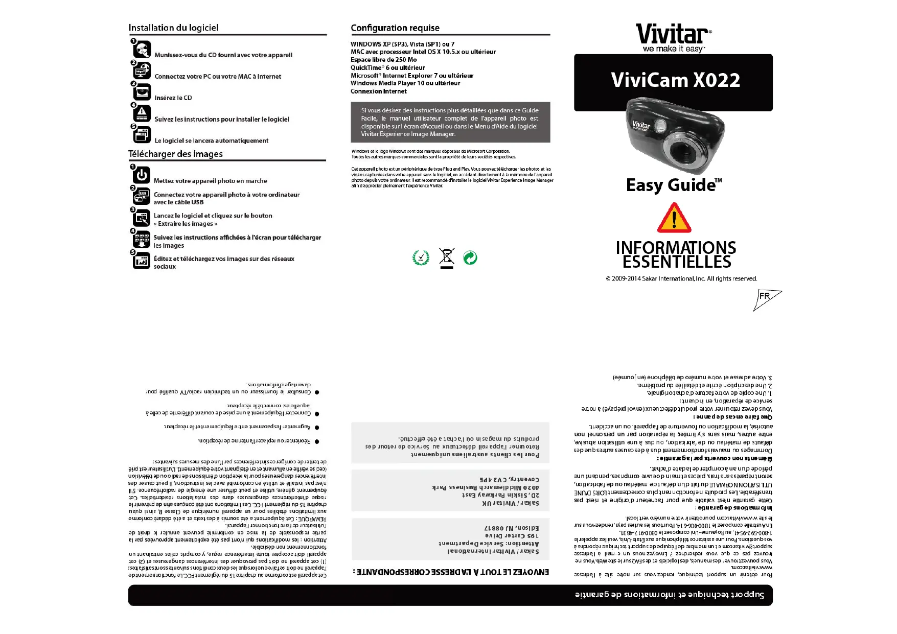 Si vous désirez des instructions plus détaillées que dans ce Guide Facle, le manuel utilisé complét de l'appareil photo est disponible sur l'écran d'Accueil ou dans le Menu d'Aide du logiciel Vivitar Experience Image Manager.