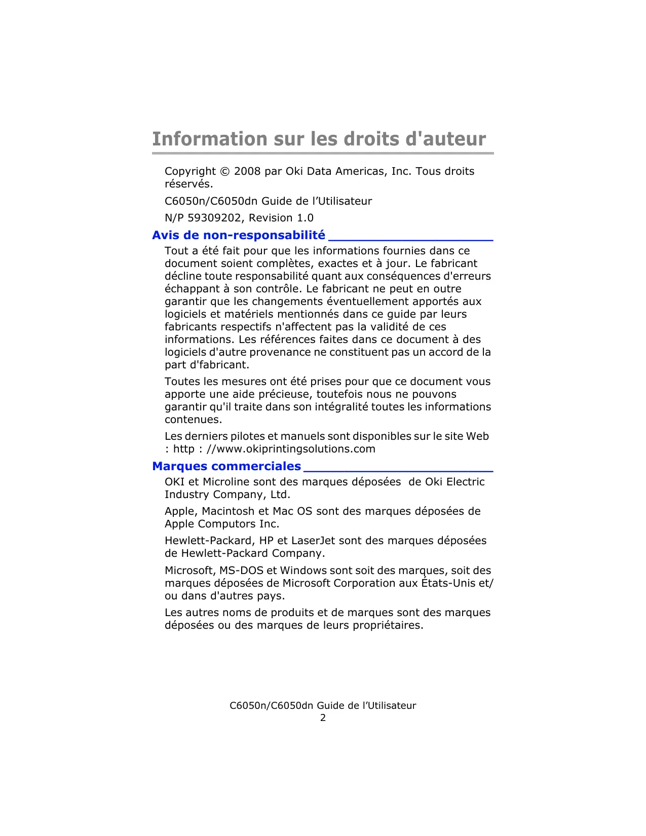 OKI et Microline sont des marques déposées de Oki Electric Industry Company, Ltd.