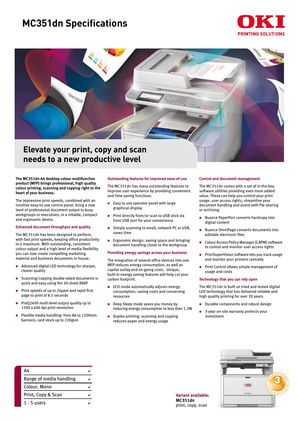 Retrouvez gratuitement la notice de l'appareil MC351DN OKI au format PDF.
