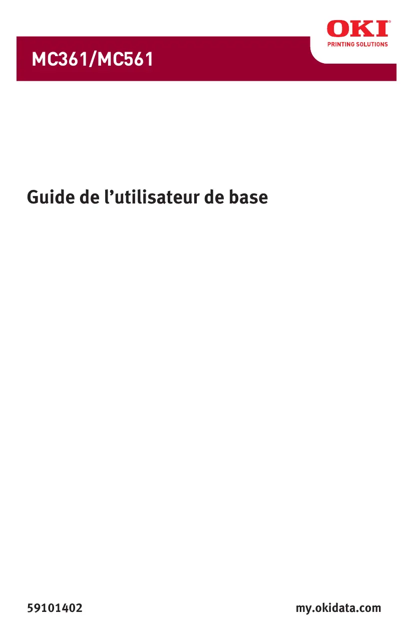 - my.okidata.com Droits d’auteur Droits d’auteur © 2010 par Oki Data. Tous droits réservés MC361/MC561 Guide de l’utilisateur de base Nº réf. 59101402, Révision 1.0 Octobre 2010 Avis de non-responsabilité Tout a été mis en œuvre pour que les informations contenues dans ce document soient complètes, exactes et à jour. Le fabricant décline toute responsabilité pour toute situation résultant d’erreurs échappant à son contrôle. Le fabricant ne peut en outre garantir que les changements apportés aux logiciels et aux matériels mentionnés dans ce guide par leurs fabricants respectifs n’affectent pas la validité de ces informations. Les références faites à des logiciels d’autre provenance ne constituent pas nécessairement un accord de la part du fabricant. Toutes les mesures ont été prises pour que ce document vous apporte une aide précieuse, toutefois nous ne pouvons garantir, de manière expresse ou implicite, qu’il traite dans son intégralité et avec exactitude les informations présentes. Les derniers pilotes et manuels sont disponibles sur le site Web : http://www.okiprintingsolutions.com Informations sur les marques de commerce OKI et OKI Data sont des marques déposées d’Oki Electric Industry Company, Ltd. Apple, Macintosh et Mac OS sont des marques déposées d’Apple Computers Inc. Hewlett-Packard, HP et LaserJet sont des marques déposées de Hewlett-Packard Company. Microsoft, MS-DOS et Windows sont des marques déposées ou des marques de commerce de Microsoft Corporation aux États-Unis et/ou dans d’autres pays. Les autres noms de produits et de fabriques sont des marques déposées ou des marques de commerce de leurs propriétaires. 2 – MC361/MC561 Guide de l’utilisateur de base Premiers soins d’urgence _________ Soyez prudent avec la poudre de toner : En cas d’ingestion, administrer de petites quantités d’eau fraîche et faire appel à un médecin. NE PAS TENTER de faire vomir le patient. En cas d’inhalation, emmener la personne à l’air libre. Faire appel à un médecin. En cas de contact avec les yeux, les rincer abondamment avec de l’eau pendant au moins 15 minutes en maintenant les paupières ouvertes. Faire appel à un médecin. Les éclaboussures doivent être traitées avec de l’eau froide et du savon pour réduire le risque de tâche sur la peau ou les vêtements. Remarque Les images utilisées dans ce manuel peuvent inclure des fonctionnalités optionnelles non installées sur votre produit. 3 – MC361/MC561 Guide de l’utilisateur de base Table des matières À propos de ce guide p. 10