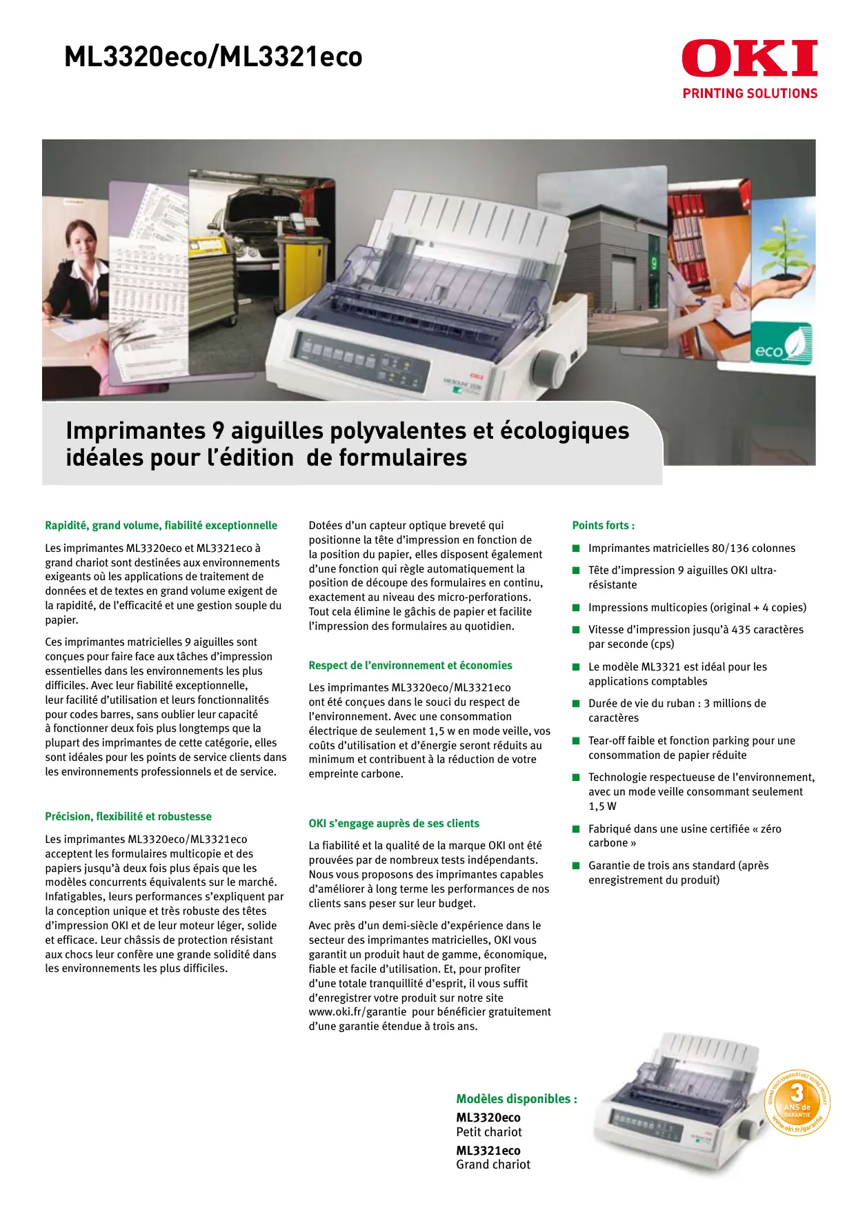 Avec pres d'un demi-siècle d'expérience dans le secteur des imprimantes matricielles, OKI vous garantit un produit haut de gamme, économique, fiable et facile d'utilisation. Et, pour profiter d'une totale tranquilité d'esprit, il vous suffit d'enregistrer votre produit sur notre site www.oki.fr/garantie pour bénéficiair Gratisement d'une garantie étendue à trois ans.