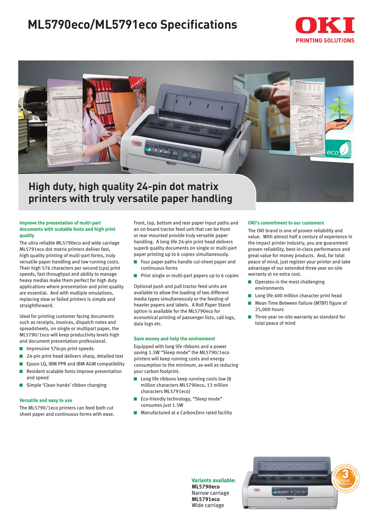 ML5790ECO - Imprimante matricielle OKI - Notice d'utilisation et mode d'emploi gratuit