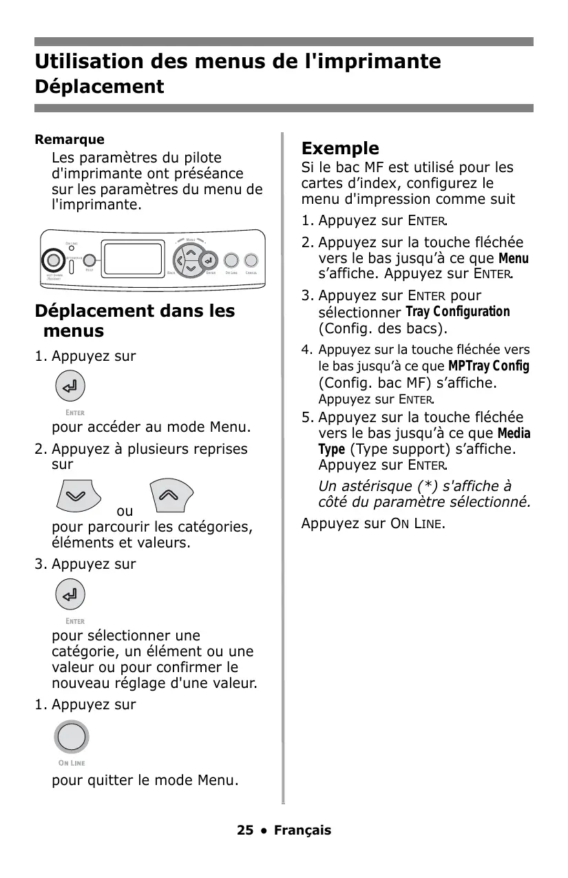 Utilisation des menus de l'imprimante 25