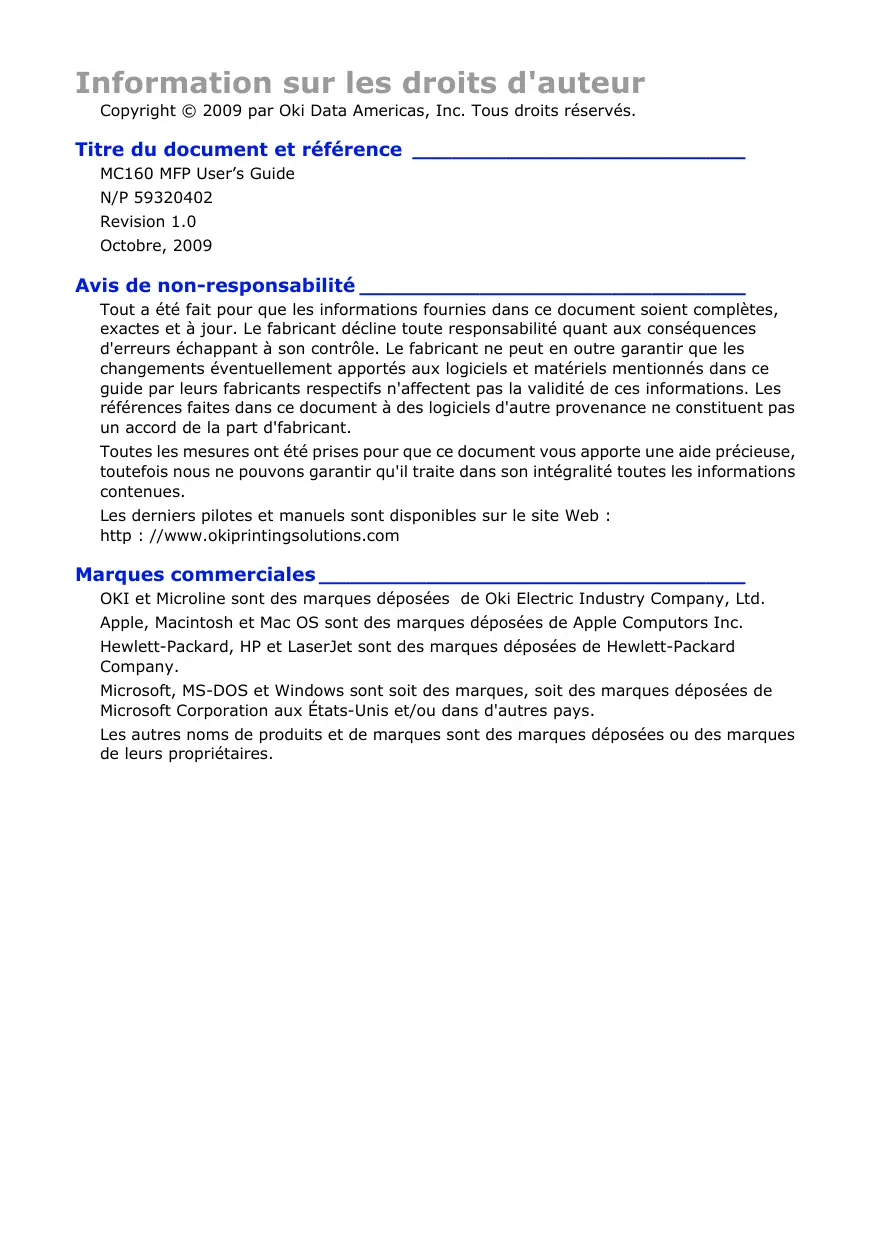 Copyright © 2009 par Oki Data Americas, Inc. Tous droits réservés.