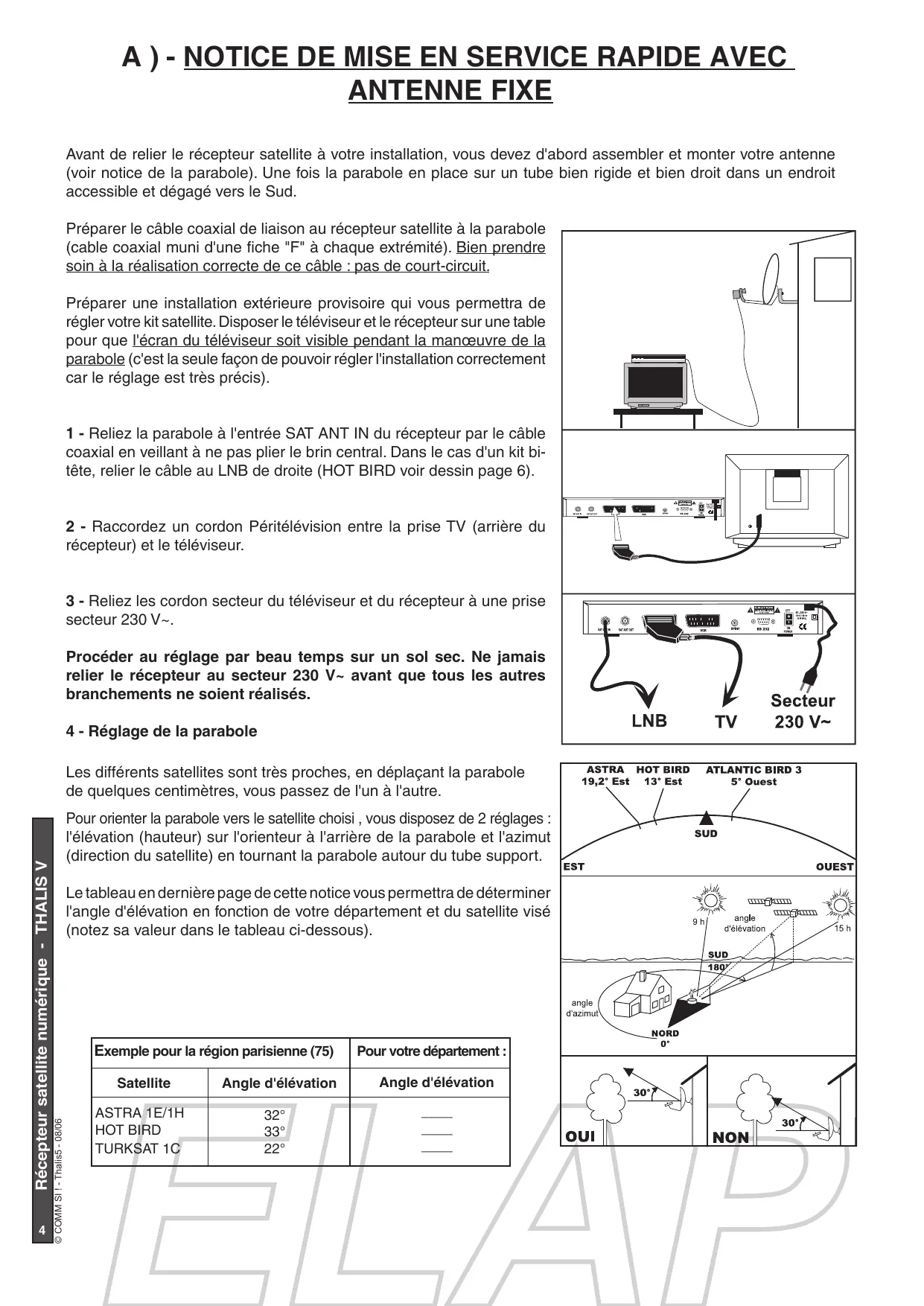 THALIS V - Récepteur satellite numérique ELAP - Notice d'utilisation et mode d'emploi gratuit
