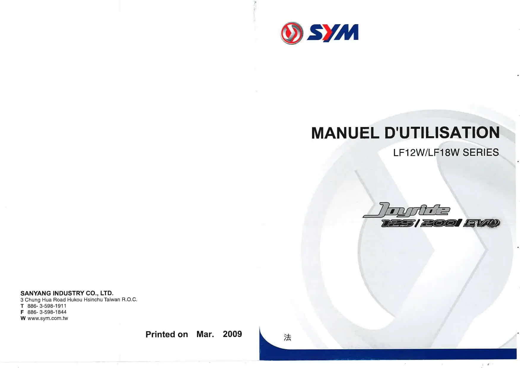 LF12W - Scooter SYM - Notice d'utilisation et mode d'emploi gratuit