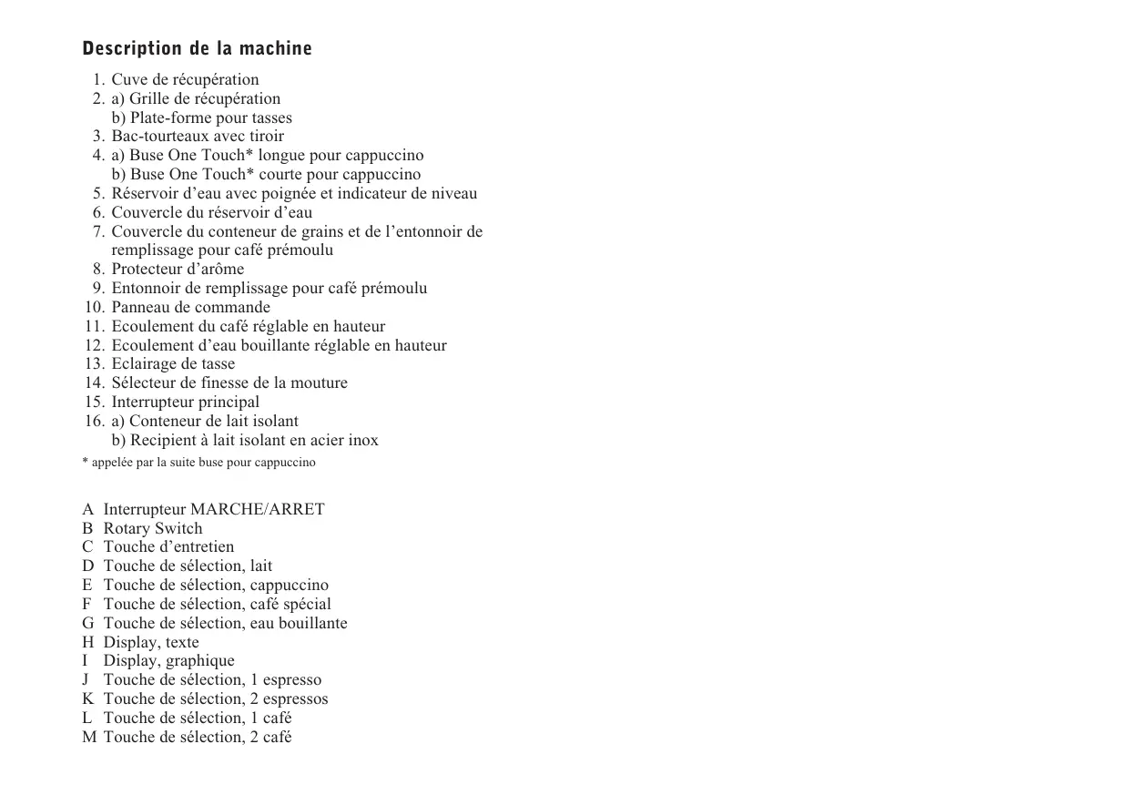 b) Buse One Touch* courte pour cappuccino