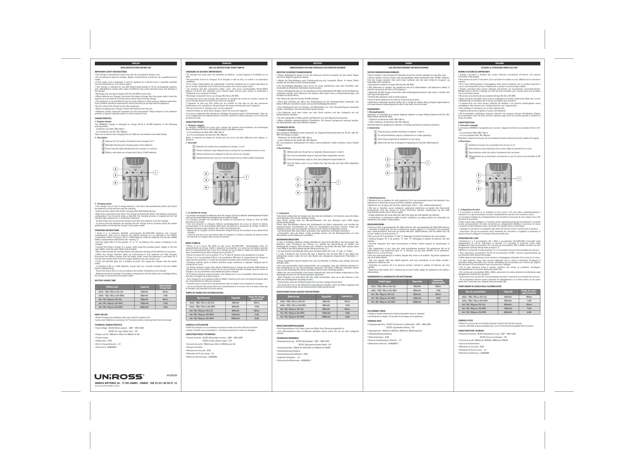 | Compatibilités | Batteries UNIROSS et autres marques compatibles avec les normes NiMH et NiCd |