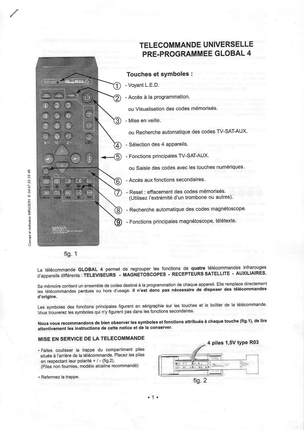 MODE D'EMPLOI GLOBAL 4 TELECOMMANDE UNIVERSELLE VISA