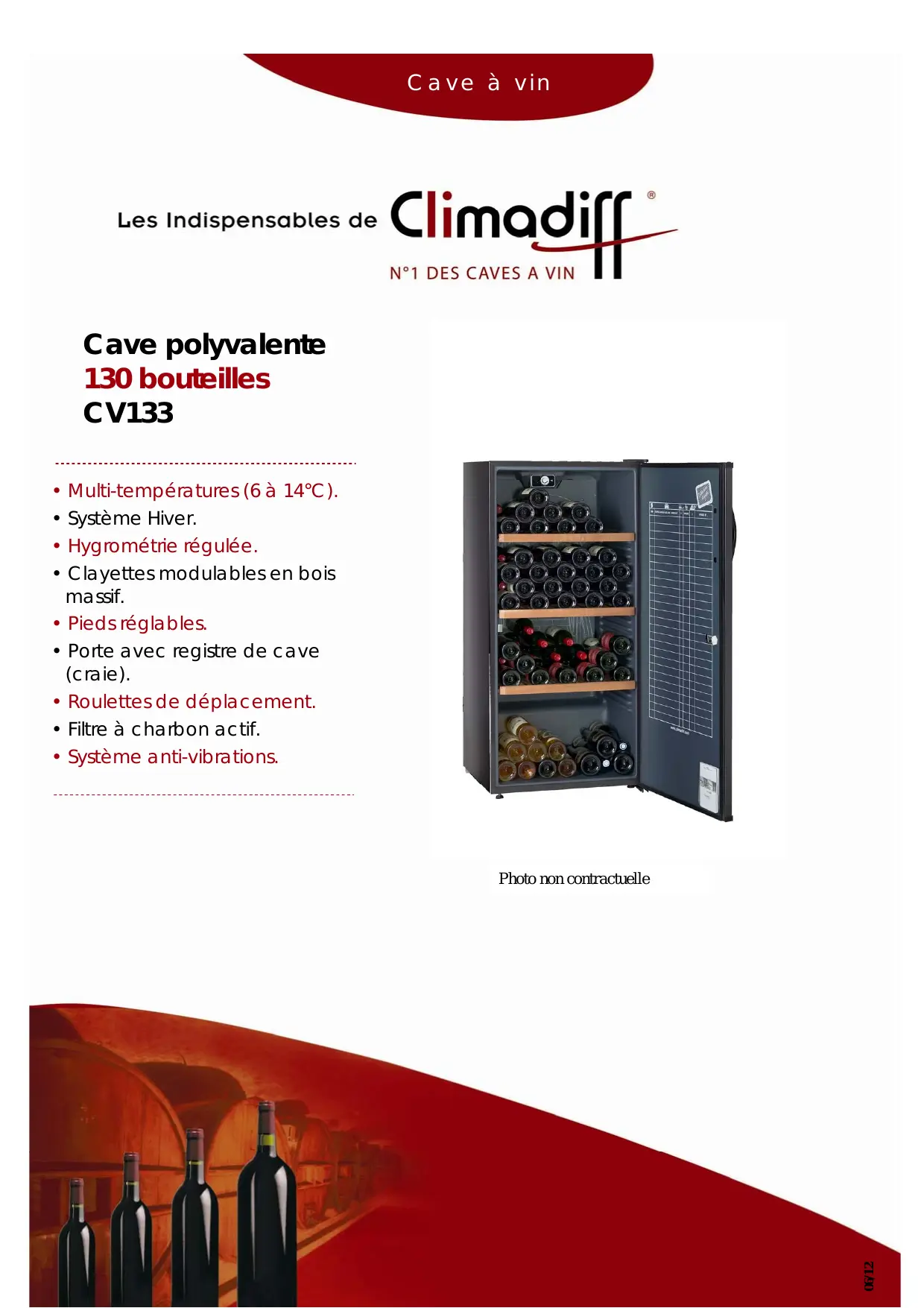 - Système anti-vibrations. 06/12 Photo non contractuelle Cave à vin Référence : CV133