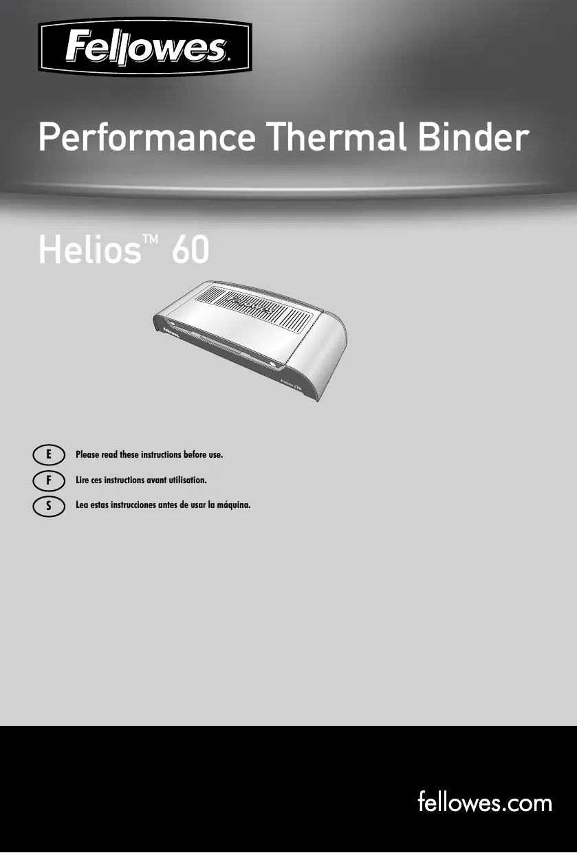 Retrouvez gratuitement la notice de l'appareil HELIOS 60 FELLOWES au format PDF.