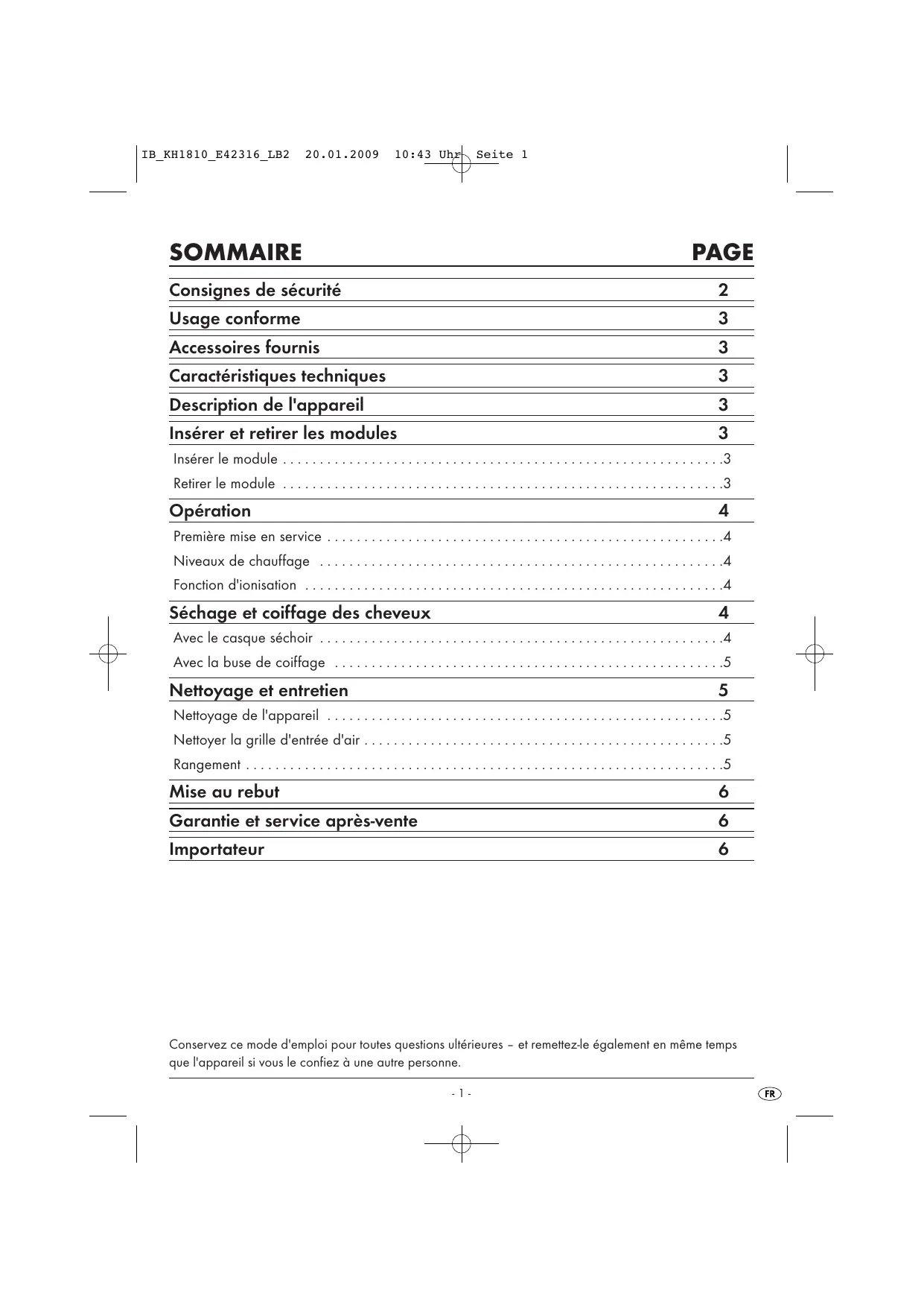 Avec le casque séchoir . . . . . . . . . . . . . . . . . . . . . . . . . . . . . . . . . . . . . . . . . . . . . . . . . . . . . . .4 Avec la buse de coiffage . . . . . . . . . . . . . . . . . . . . . . . . . . . . . . . . . . . . . . . . . . . . . . . . . . . . .5 Nettoyage et entretien