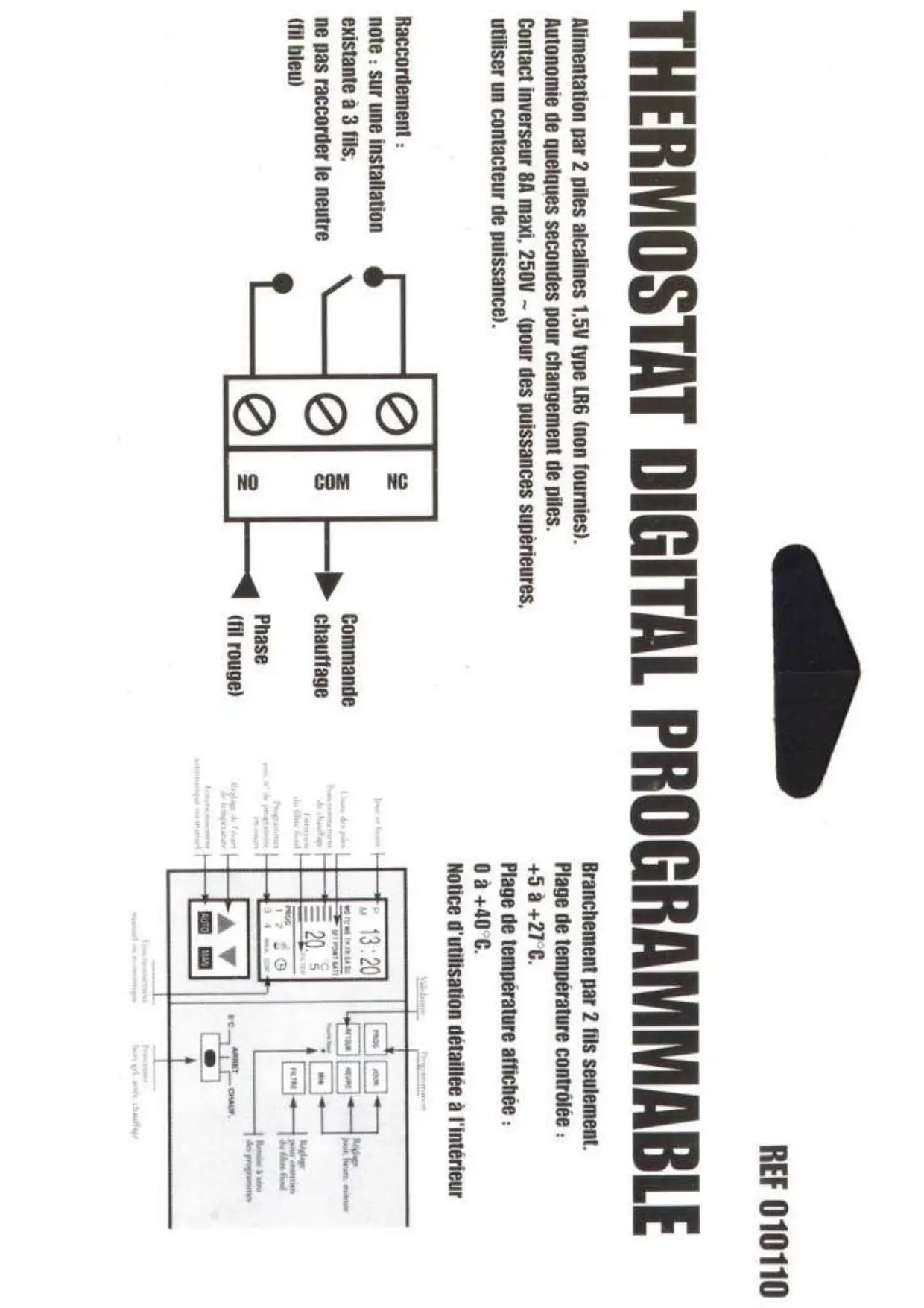 Retrouvez gratuitement la notice de l'appareil TERMOSTAT PROGRAMMABLE 010110 DOMLINE au format PDF.
